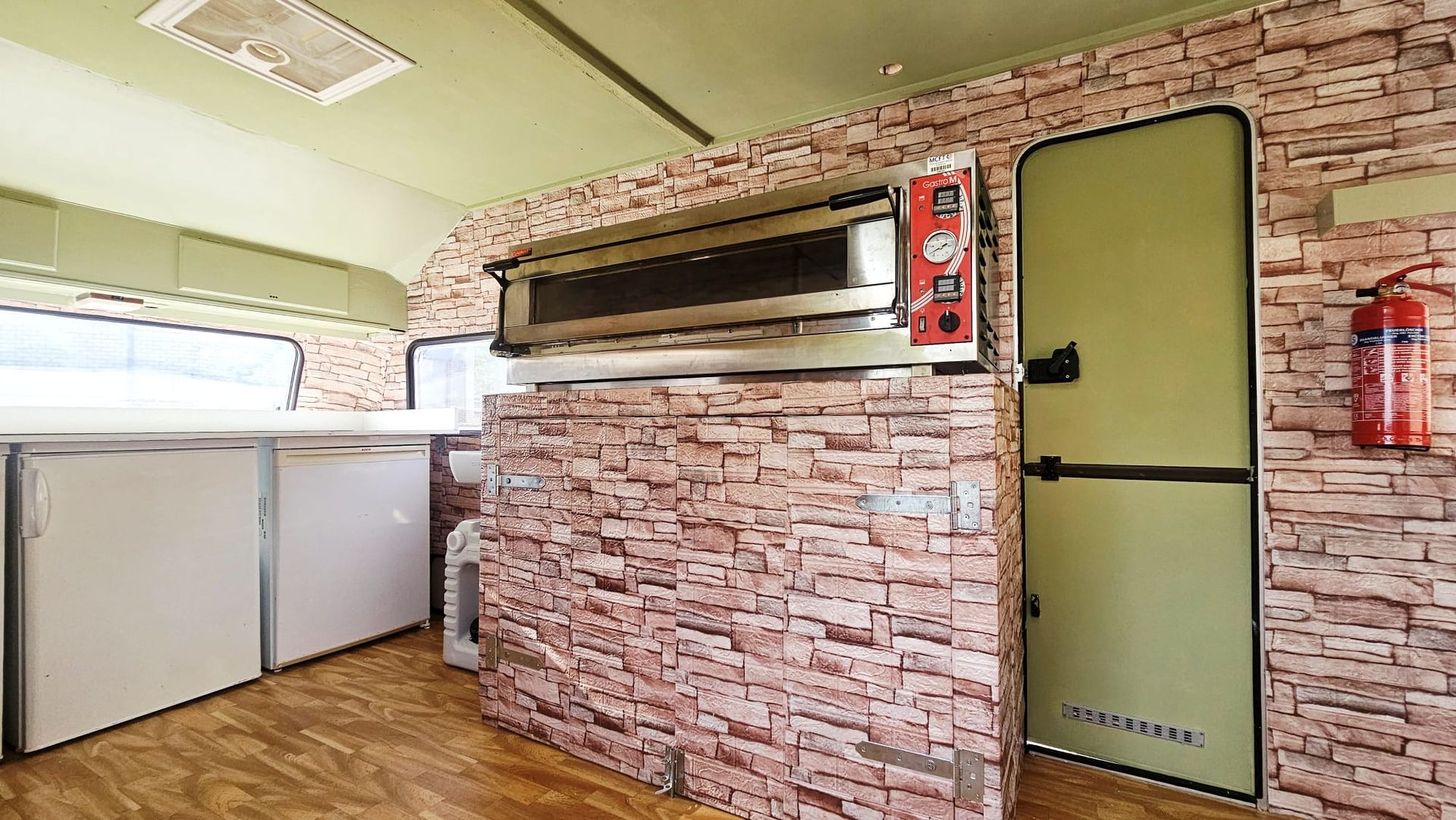 Onze unieke foodtruck is een waar mobiel laboratorium. Elke pizza wordt gebakken in onze speciale elektrische oven van vulkanische klei voor een perfecte korst.